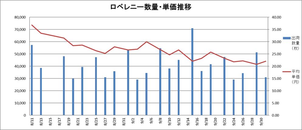フェニックス・ロベレニー | 145,950 | 21.73 | 令和7年9月期、出荷量のピーク時期に入るが、まだ極端な増加とはなっていない。単価的にはサイズ等によって多少ばらつきが見える。 | 2,279,800 | 30.22 |