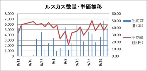 ルスカス | 18,125 | 40.76 | 令和7年9月期、残暑の中出荷量は減少しているが、単価についてはそれぞれの等級で安定した。 | 1,113,775 | 36.57 |