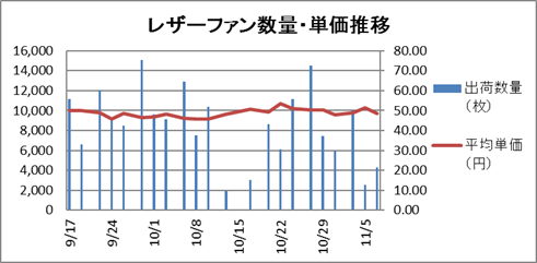 | レザーファン | 22,840 | 49.25 | 台風災害で、レザーの施設についても大きな被害を受けた。ルスカス同様、今後の出荷量についても影響が懸念される。 | 965,760 | 44.46 |