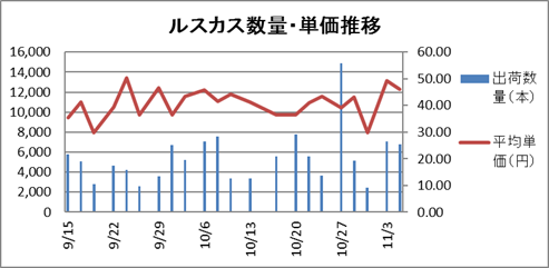 | ルスカス | 21,400 | 42.03 | 台風災害で、ルスカスの施設についても大きな被害を受けた。今後の出荷量についても影響が懸念される。 | 1,194,100 | 36.90 |